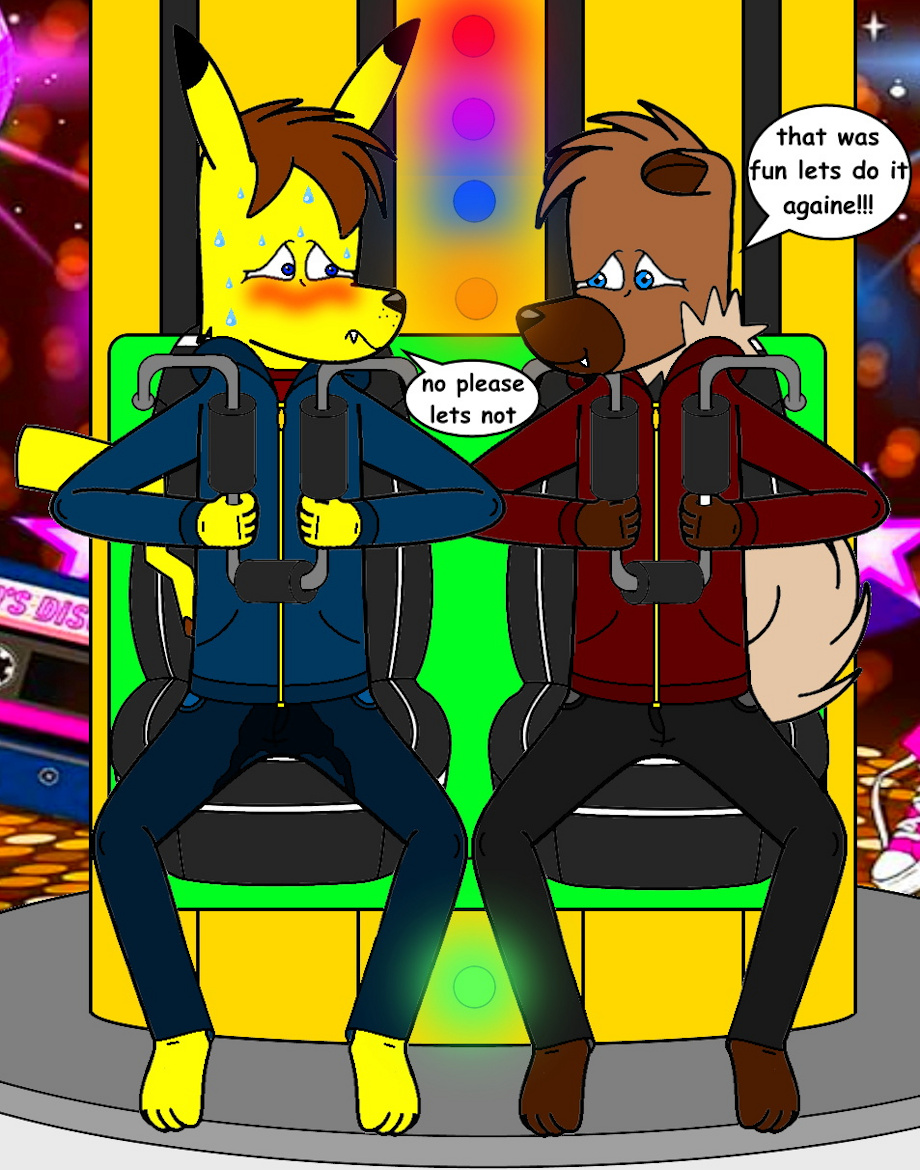 So it was Carnival in town so the pokemon cubs whent out and enjoined themselves so little pikachu and rockruff We're going to try this new ride Which goes up very fast and down very fast as well so rockruff was enjoying every moment of it but Pikachu was not he was honestly terrified So after the ride was finally done Rockruff wanted to do it again but Pikachu passed on it because as you can see he is really scared