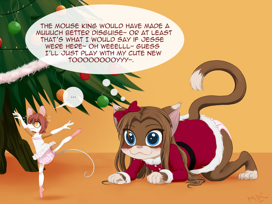 She got a dolly for Christmas, a lil' mouse dolly, isn't that right NormalDeviant? Wait isn't Jesse usually a cat? Anyway, that's a nice diapered doll, just keep up the pose, she definitely won't notice~.