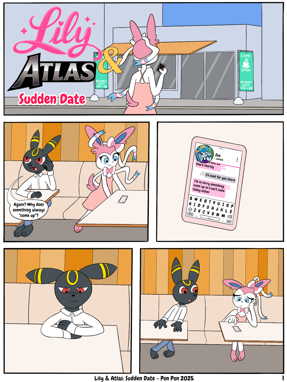 This is Lily the female sylveon and Atlas the male umbreon, who each were planning to meet their friends, but that didn't happen. However, maybe they can become friends instead ...?