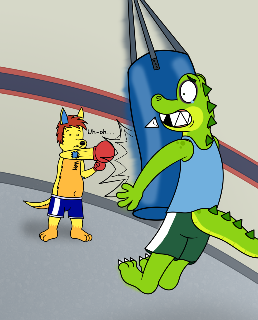 Croc was in the gym preparing to exercise, however, without realizing it, Kai had hit the punching bag so hard that it hit Croc and sent him flying, leaving him with a black eye and a dislocated tooth, while Kai had an unexpected look.