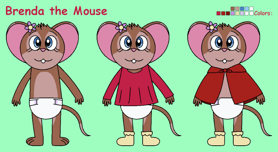 Brenda's a kind little mouse girl who adores nature. She tends to get scared sometimes. She also has a thing for sketching drawings. She's normally shy around others, but once she gets to know ya better, she can get along just fine.