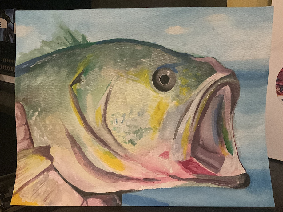 This is another Christmas present painting I made. This time, it is a painting of a Bass. What do you think of this traditional painting.