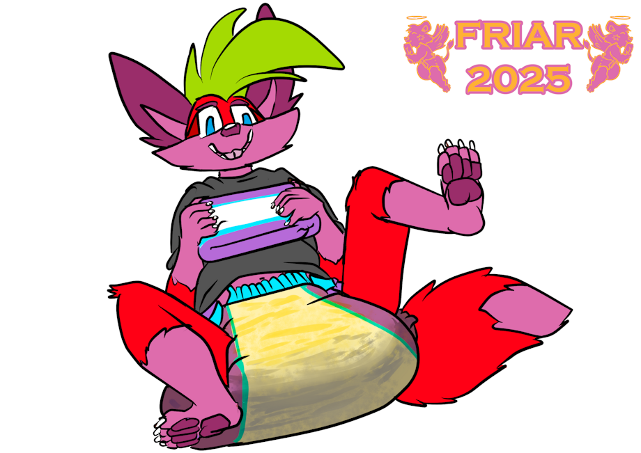 Illustration of Berry the wet and messy diapered fox about to get his diaper changed on the changing table, holding a fresh diaper while pooping his diapers. "Do you mind giving me some changies?"