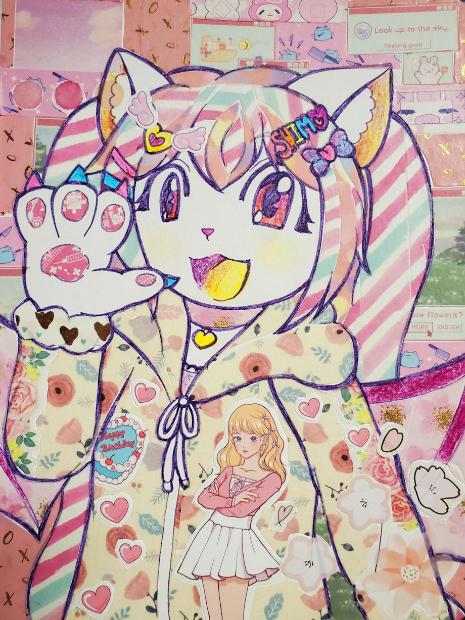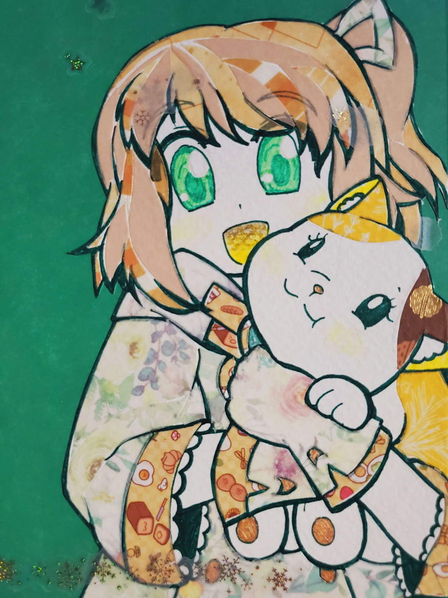 Made this hybrid Christmas card art insert for a particular artist named Kari Avalon, of her OC, Shia, holding a Fat Cat from Final Fantasy 14! Honestly IDK what to draw Shia in, but she's also one of my fave OCs from Kari's creations!
