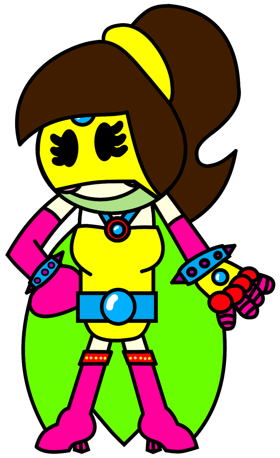 I did the Bomberman characters in girly superheroine costumes which took me a while on. I also worked on the Green Bomberman for this one.