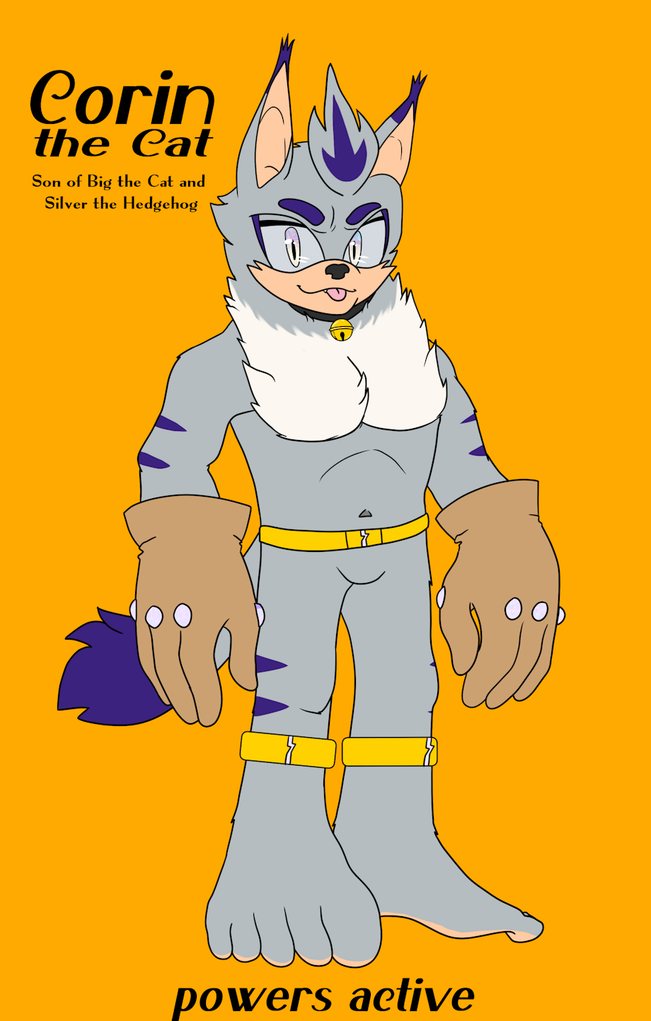 Corin started out frail but quickly gained a lot of Big's resilience, and has his own unique power. He can absorb energy from other people and things, and store it within him. His gloves help with transferring energy, and the belt and bands on his legs let him use that stored power in various ways! He lives in the future with Silver, helping with the city's power grid infrastructure.