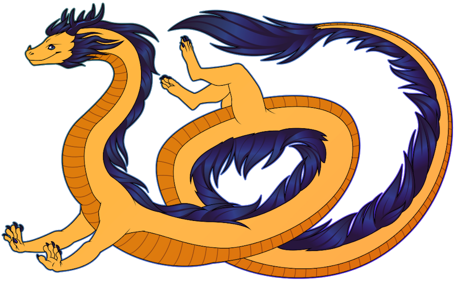[A flat-colored illustration of an eastern-type dragon with an iridescent mane and antlers, floating and curling around himself playfully]