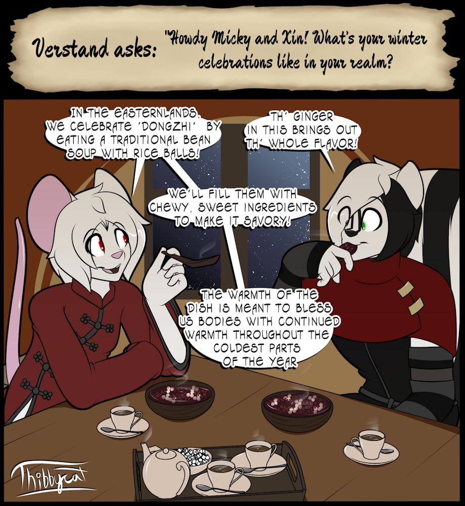 Even Mickey can't help but enjoy the kinds of winter dishes that Xin can bring to the table! Even if the soup keeps them warm, I think they can always count on each other for that as well!