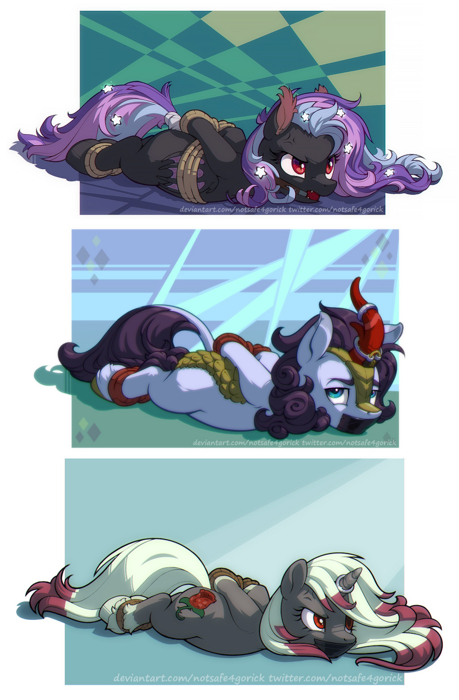 I saw an image with Twilight in classic rope bondage, liked it and redrawn it from scratch as a pose base. And later decided to turn it into few ych slots, including one fully rendered.