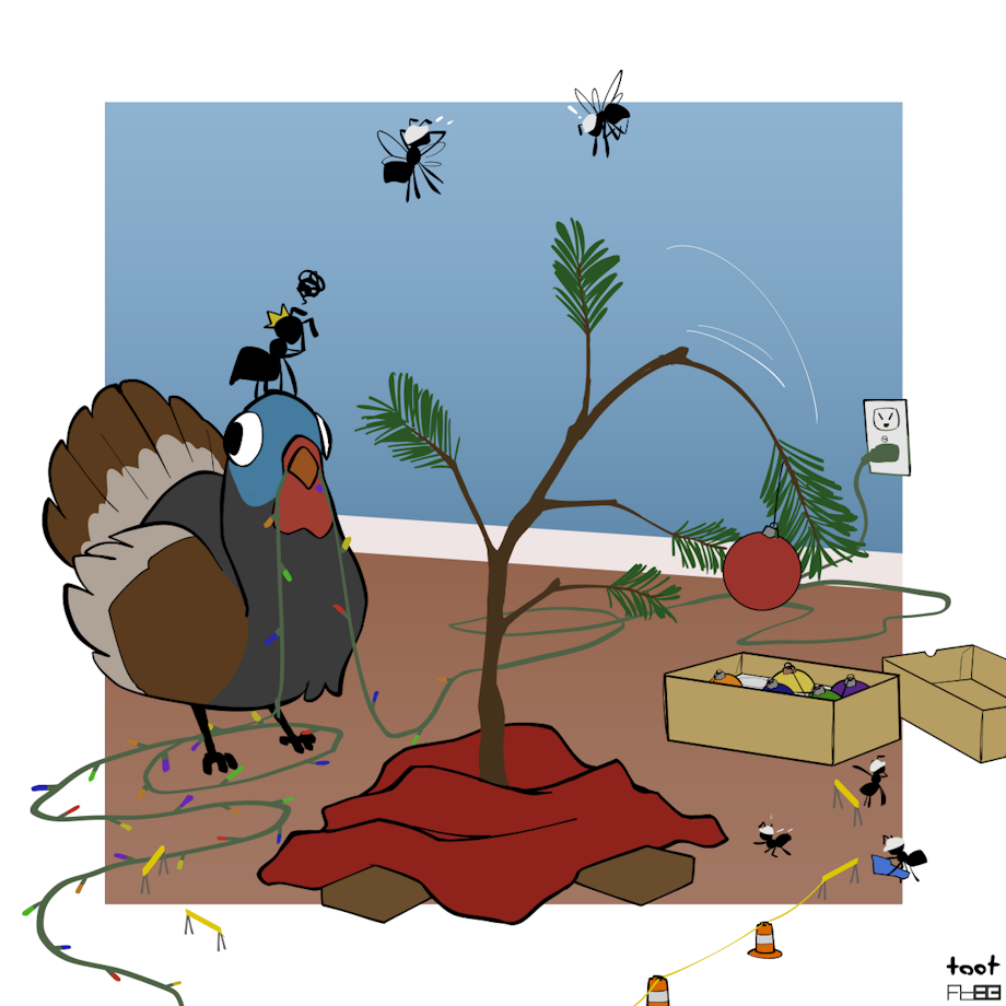The vixens are away from the house so the turkey and ants are doing a little Christmas decorating~