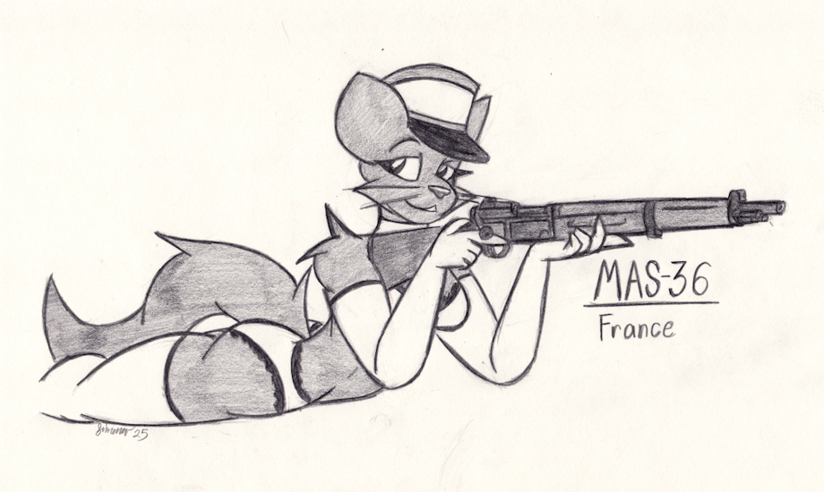 Vive la France! A Chartreux girl here is sporting the magnificent MAS-36 rifle.
