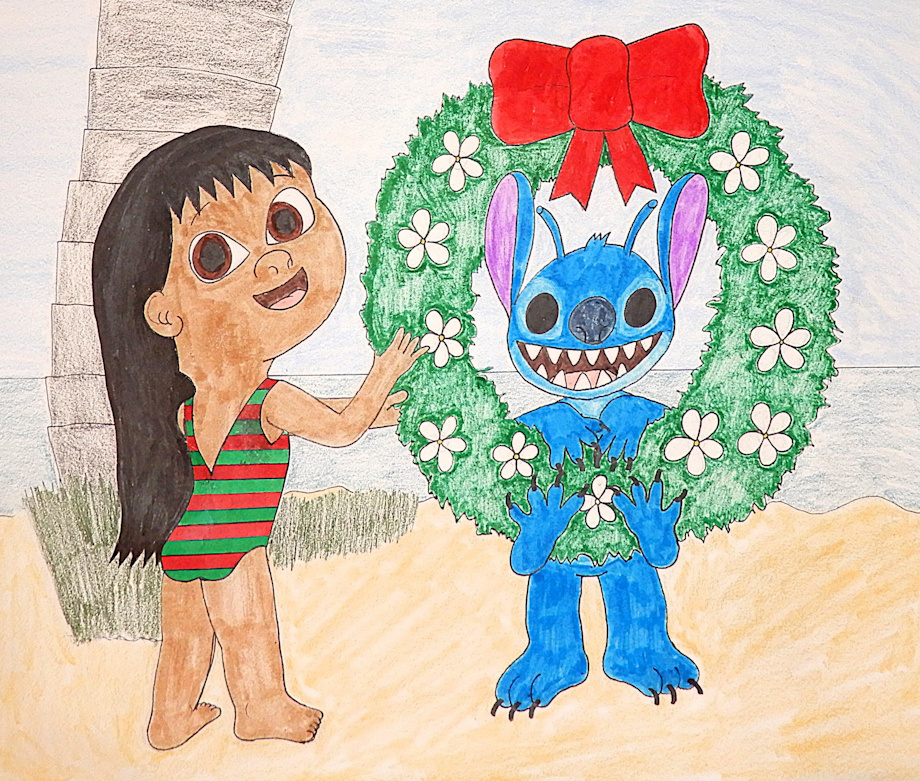 A Hawaiian Christmas greeting from Lilo Pelekai and her alien friend Stitch. 🏝