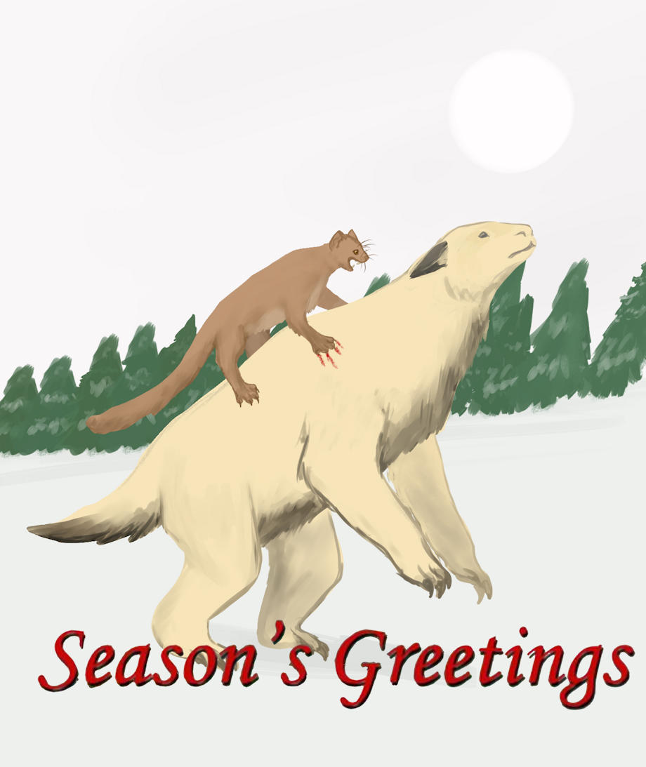 Seasons Greasons by Dave Garcia, featuring the Multituberculate Earth animals Kuzcotherium and Baroauchenia. Nevermind how tropical species ended up in an ice scape.