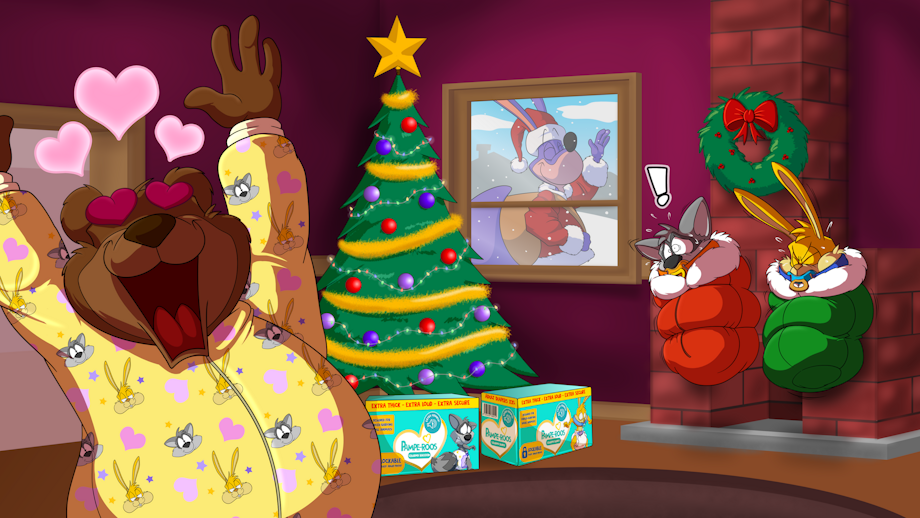 Looks like Keith was VERY good this year cause Santa Boing has just brought him exactly what the bear asked for - two cute little friends who clearly can't wait to become his adorable baby boys! And of course he also remembered about the starter pack of the famous Pampe-Roos, so the squirmy presents can get properly "wrapped up" again right after they're taken out of their current, puffy packaging~ It's gonna be a very crinkly Christmas!
