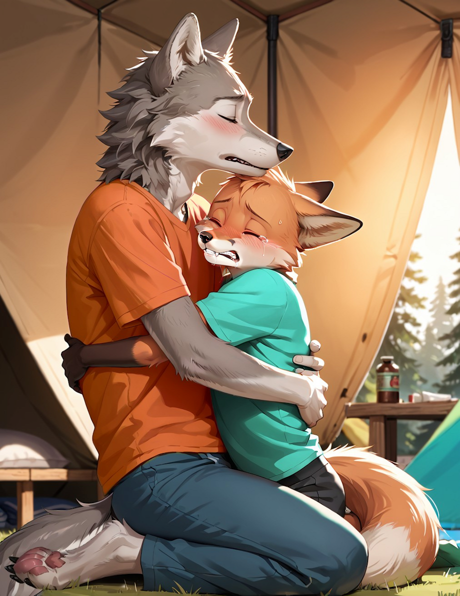 First day waking up in camp, Tiki, the fox, mentioned that his fur was matted in a spot and a bit sticky. Kody's heart skipped a beat because he knew exactly what it was. The fox seemed embarrassed as he quickly dressed. Kody desperately ignored the fact that his cum was in the fox's fur. "So, Tiki, what badge do you want to earn most?" "Hmm, I don't know," the fox evasively said. Kody asked a few more questions about camp activities while he tried to get the camp put together. They had about an hour before they had to meet up with the rest at the main campsite. Kody brought up video games, knowing any boy Tiki's age plays some, but the fox was even evading those questions. Kody started talking about the popular trading card and video game monsters. The fox cub was hesitant, but when Kody started to talk about more specific details, the fox opened up. "You caught that one?" Kody exclaimed in response to Tiki's chat. "Yeah! He was really hard to find!" Tiki boasted proudly. Now opening up, the two chatted about more video games. They reunited with the rest of the troupe not long after, and Tiki was still shy around the others but the ice was definitely broken with the wolf. Before long, they had to disperse to their scheduled activities and Kody had his classes to teach. Walking away, Kody felt a slight pang of guilt over his actions from the previous night. Tiki is a sweet kit, and he seemed desperate to have someone to not judge him for his interests... Kody pawing off to the fox cub when he was sleeping didn't seem right... Later that afternoon, the two stayed around their camp and continued to bond. They talked about their favorite movies and TV shows, favorite animals, favorite classes at school, what they did for the day... Kody didn't judge any of the boy's interests, and found that they actually shared a lot of them. There were some that Kody had grown out of, or wasn't interested in but he still let Tiki talk to his heart's content about them. With the sun setting, they both settled inside the tent. The wolf was aware of dressing down in front of the fox cub; he didn't want any of his perversion to come through but he still took off his shorts and changed his shirt before settling into his sleeping roll. Tiki was more shy as he got into his sleeping roll fully clothed, and only then took off his shorts and uniform shirt. After chatting a bit more, they both grew a bit tired. "Okay kit, let's get some sleep," Kody finally suggested after asking the kit about some board games. "Don't be so boring," Tiki responded gleefully. "I'm not even tired." "Boring?" Kody questioned... Kody crawled toward the fox, who started to giggle, and Kody quickly and mercilessly started to tickle the boy. Kicking and giggling, the fox was dragged out of his sleeping bag where Kody could relentlessly tickle him. |