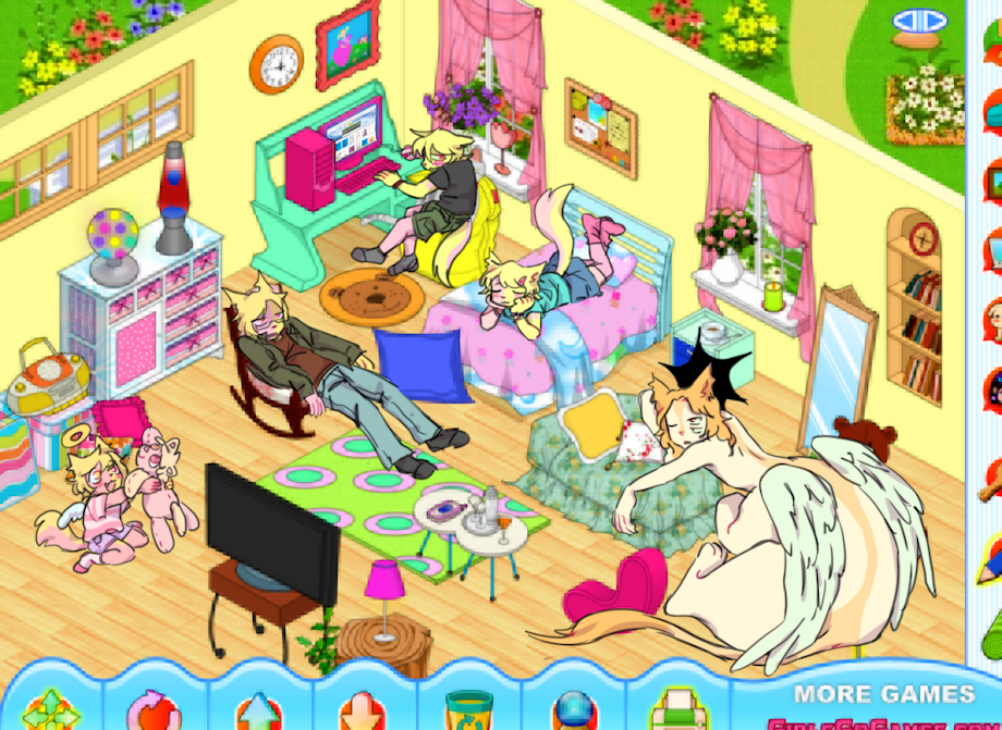 All my fursonas/variations hanging out in My New Room 3 by GirlsGoGames.com