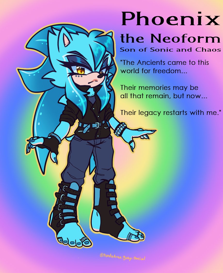When Chaos summoned all of the guys for a little playtime, no one really knew why... until the mysterious creature laid an egg resulting in a very strange blue hedgehog-like creature. With most of his genetics being connected to Sonic, he was happily taken in.
