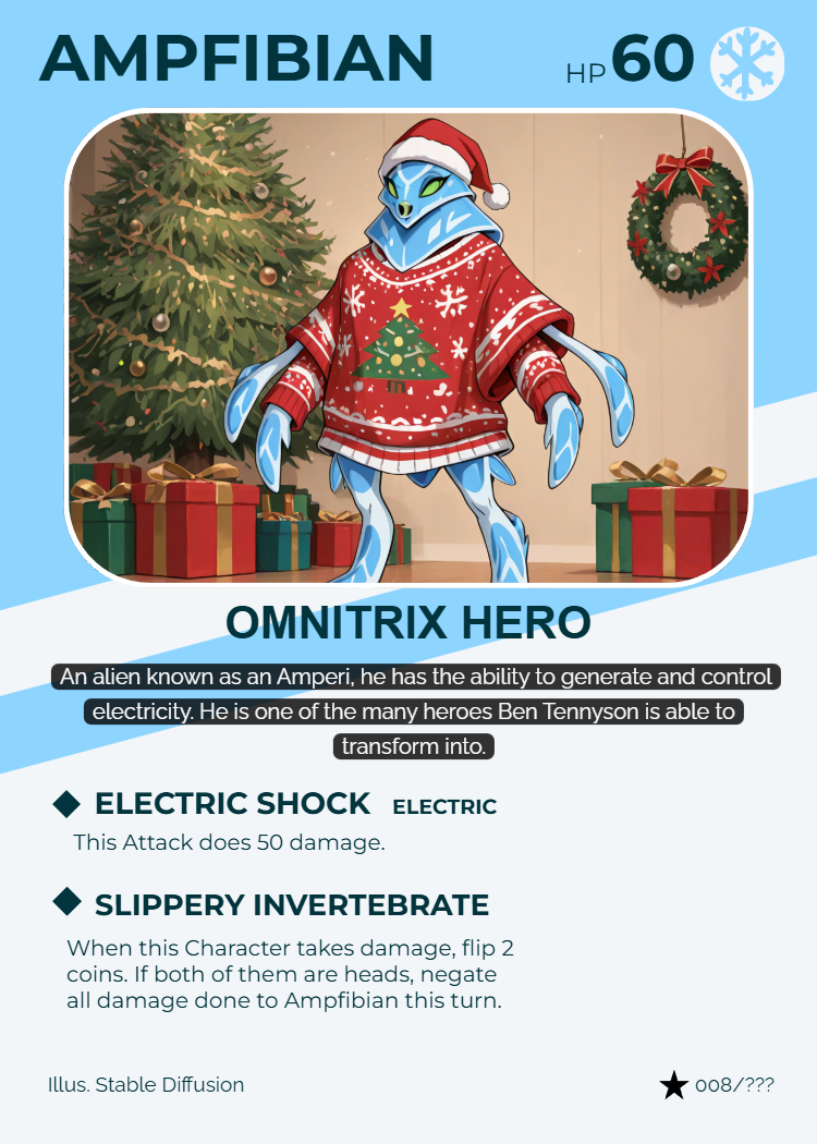 masterpiece, best quality, amazing quality, Christmas theme, Christmas tree, Christmas present, Christmas sweater, santa hat, standing, ((solo)), <lora:ampfibian:1>, ampfibian, full body, pokemon (creature), no humans, colored sclera, green eyes, blue skin, tentacles, colored skin