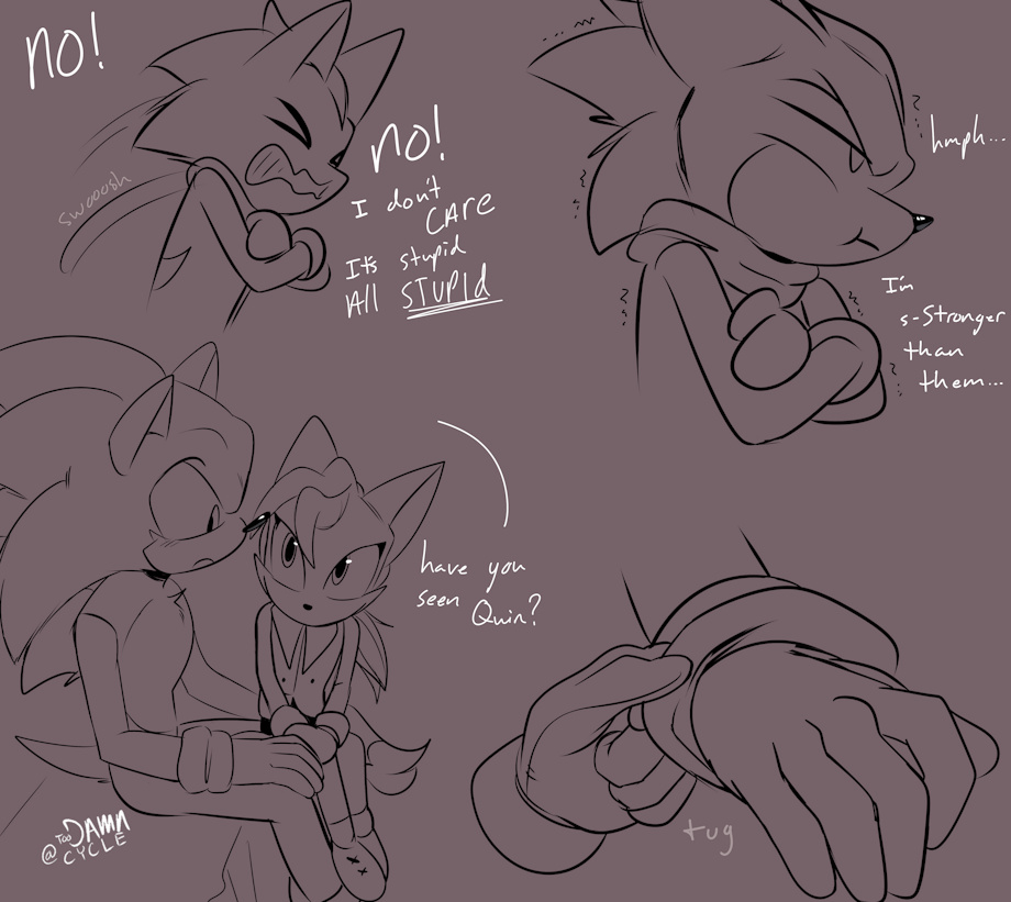 Looking again, I see that Quin loves Sonic, great character development from him. That big goofy smile shows it!