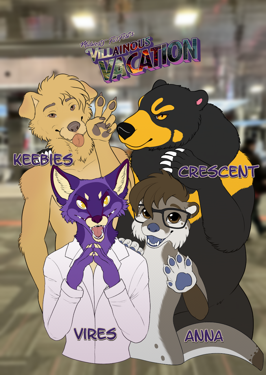 featuring himself, Keebies, me and Wirefur for our room at Midwest Furfest 2025!