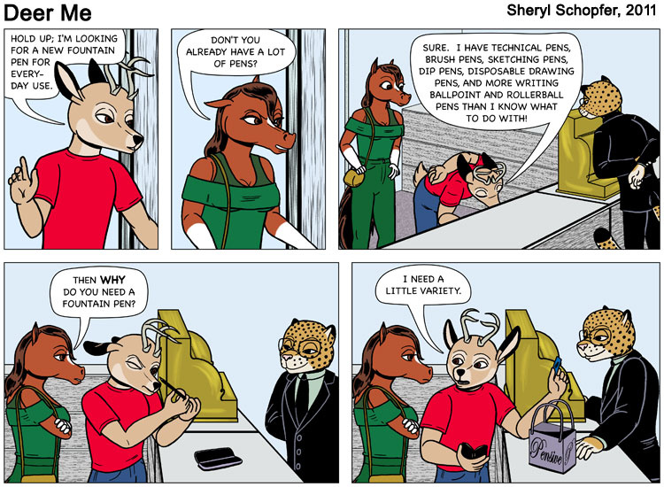 I primarily use two kinds of pens, mostly depending on what application they're for, so while I can see his point, I also am not "up there" enough to join in. =^.~=