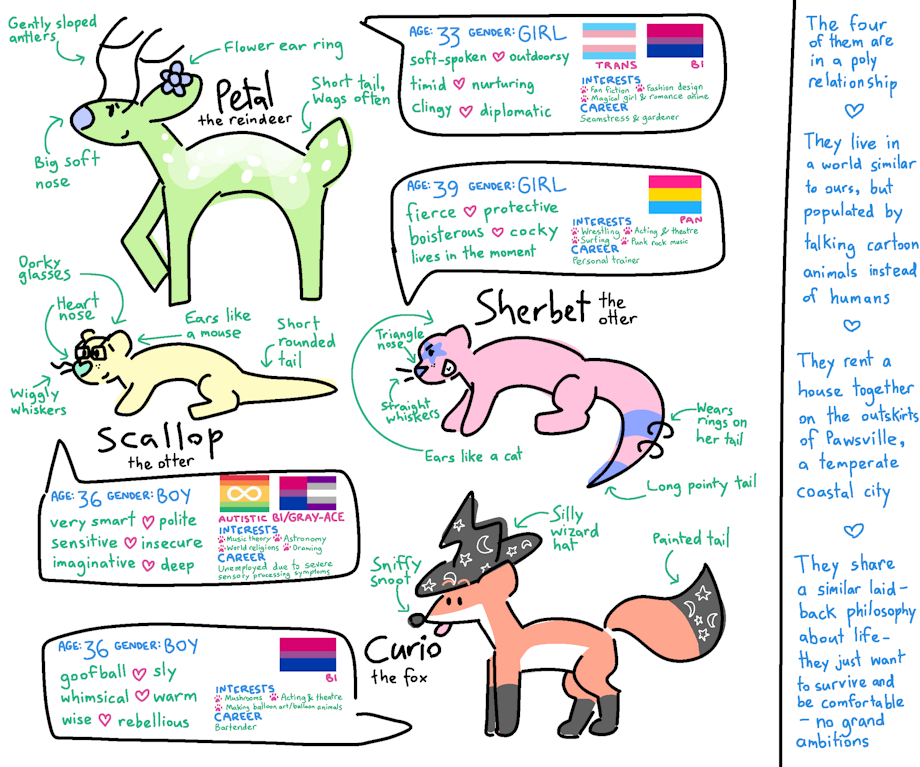 Petal, Scallop, Sherbet & Curio SFW character info/lore