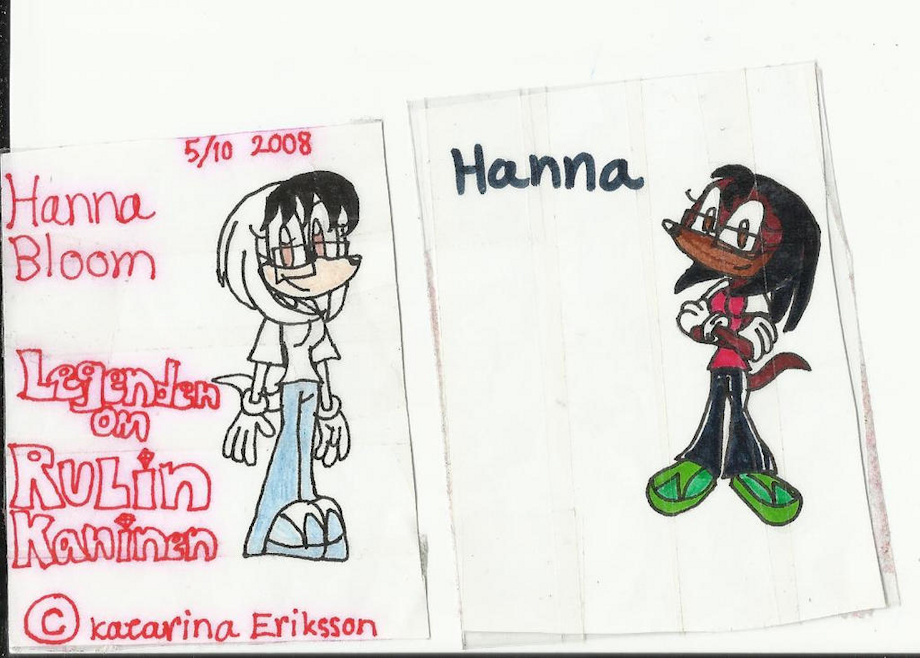 These are few of the early design concepts of Hanna Bloom the Echidna six years ago. I was making a story called "The hunting for the Rabbit of Ruby" before I joined the Deviantart. The early title was "The Legend of the Ruby Rabbit". Oh, by the way, I didn't make the B right with the "Rubin" which is the Swedish word for "Ruby". It was hard to design her and colour her from the beginning.