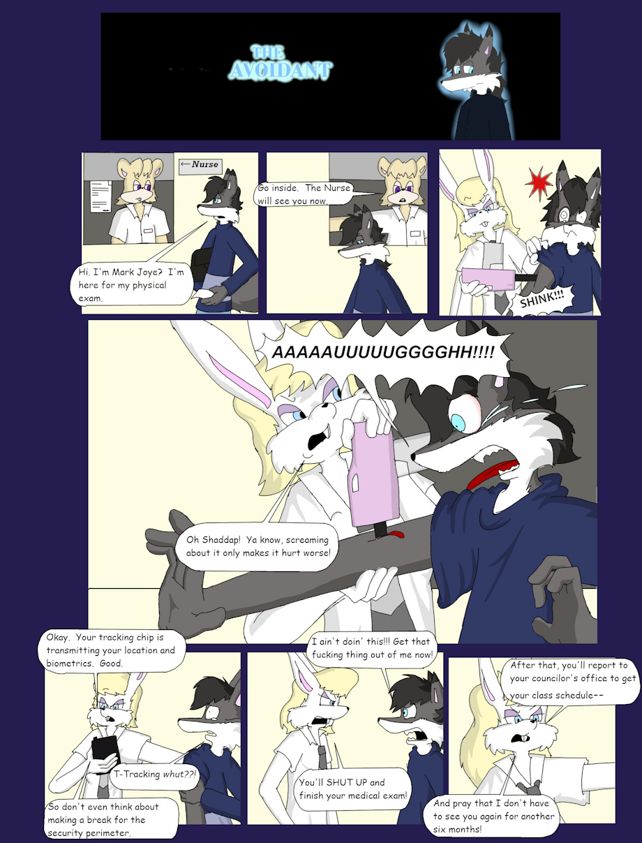 Mark enters the school he will be attending for the next four years, does not check in, and receives the customary medical exam from the school nurse. And by exam, we mean "injection of a biometric tracking chip that monitors his location at all times, his autonomic functions, records his physical and mental condition, detects injury or trauma, and sends automated alerts to the security station and sets off alarms if he does anything." That kind of 'medical exam'.