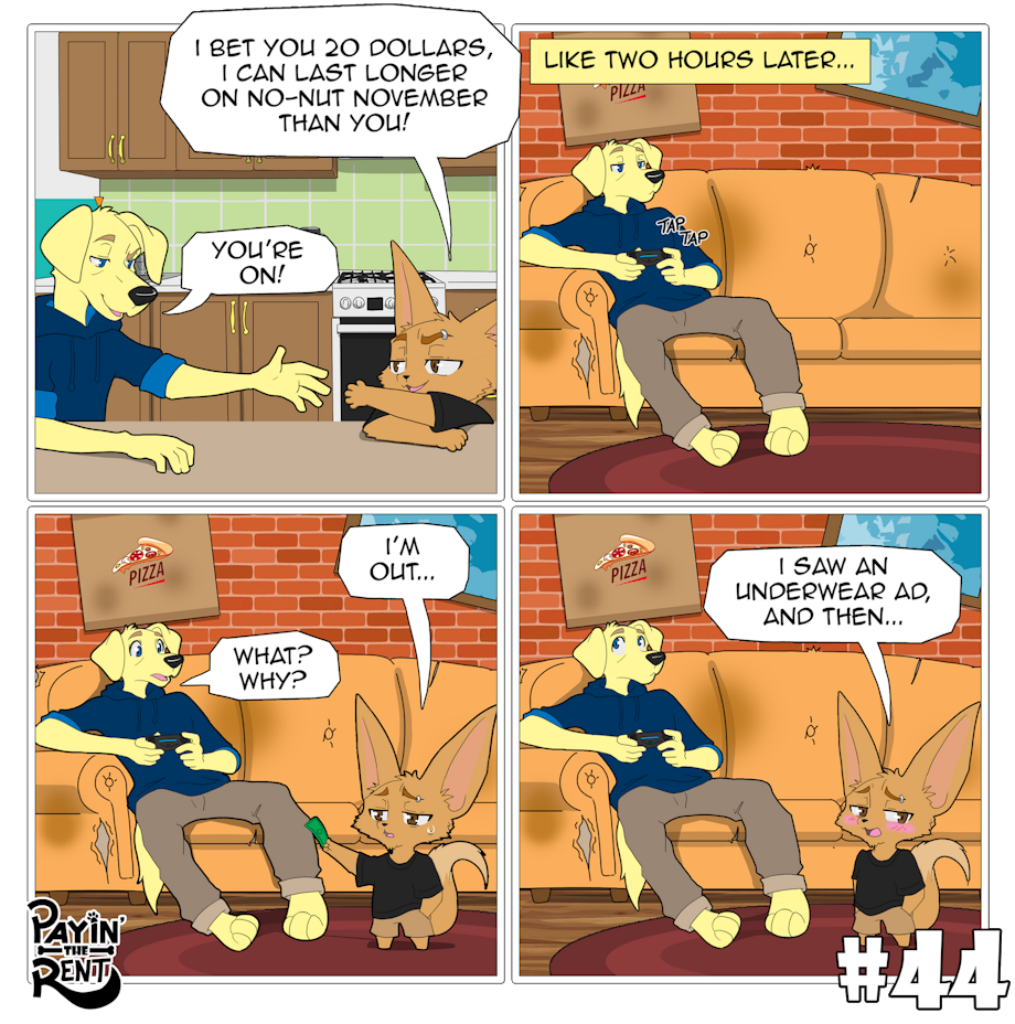 Payin’ the Rent is a slice-of-life comedy comic following the chaotic misadventures of Roger, a foul-mouthed, laid-back fennec fox, and Ben, his nerdy, optimistic Labrador roommate. The two live together in a cramped apartment where every day spirals into ridiculous situations.
