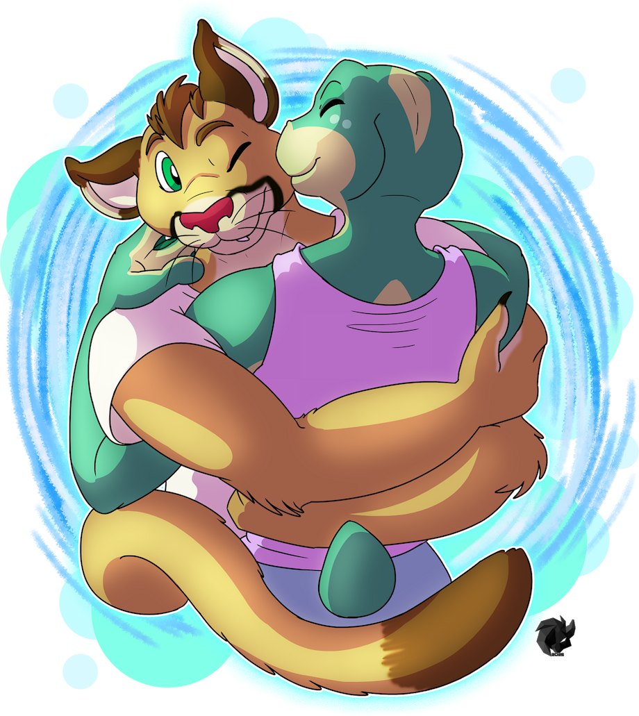 Once again Valyce did a glorious job and I adore her deception of the pair, Spence and Cole look so squishy warm, she did so well with the hugs and the smile they each have shows so much emotion and character plus the tail wrap is a great bonus! A massive thank you to her for the double image. But yeah go 'n check out her galleries on FA bsky and telegram! furaffinity.net/user/valery91thunder/ bsky.app/profile/valycenegative.bsky.social https://t.me/VeeNegaUpdates www.valycenegative.it Thank you again Valyce Negative you rock!