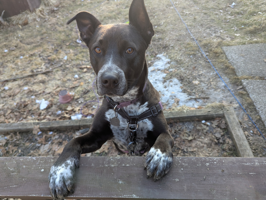 Meet Millicent Twinkletoes, the husky/heeler/pit mix.