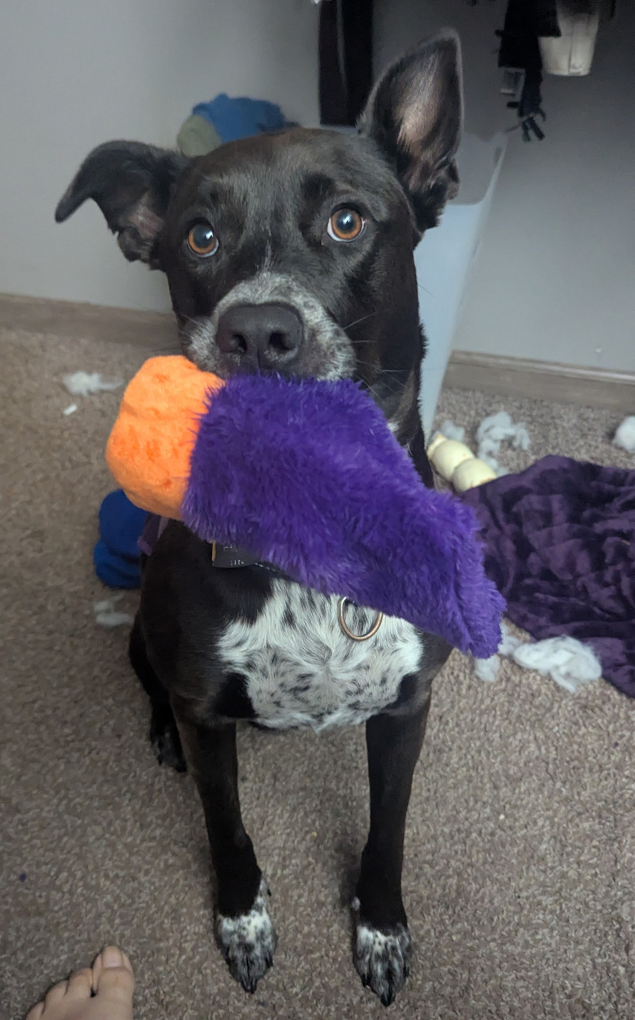 She also loves to shred things, like toys, plushies, and ice cream pints.
