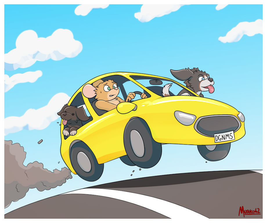 Aetherfax, Omegapaw, and Patch out on a road trip. Doggies will be doggies!