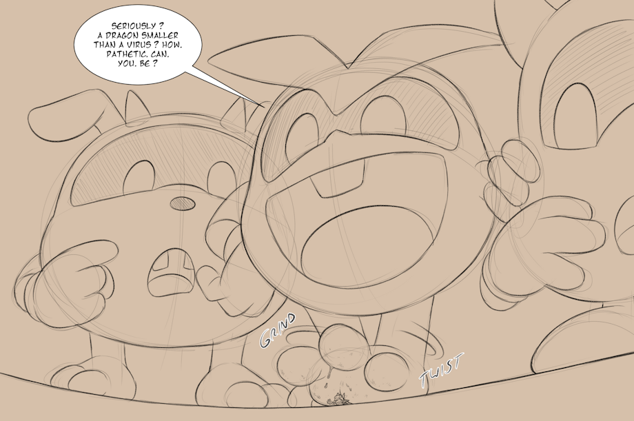part of an old art slave sesh for Gibblet. Poor Spelka got so pathetically small even the Dr. Mario viruses can bully her now :3