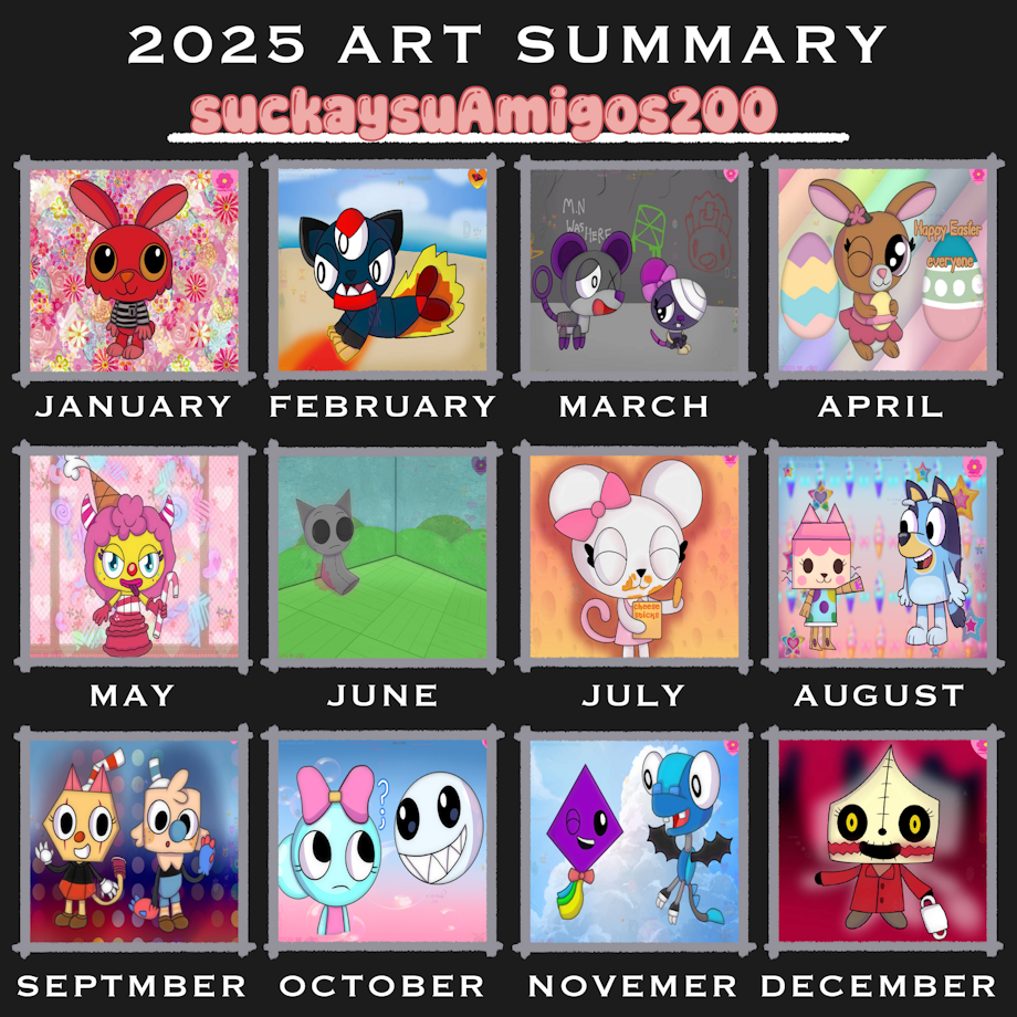 Como vi a muchos de mis amigos haciendo este tipo de meme, y como el 2025 está llegando casi a su fin, decidí hacer mi resumen artístico del arte que hice en 2025.