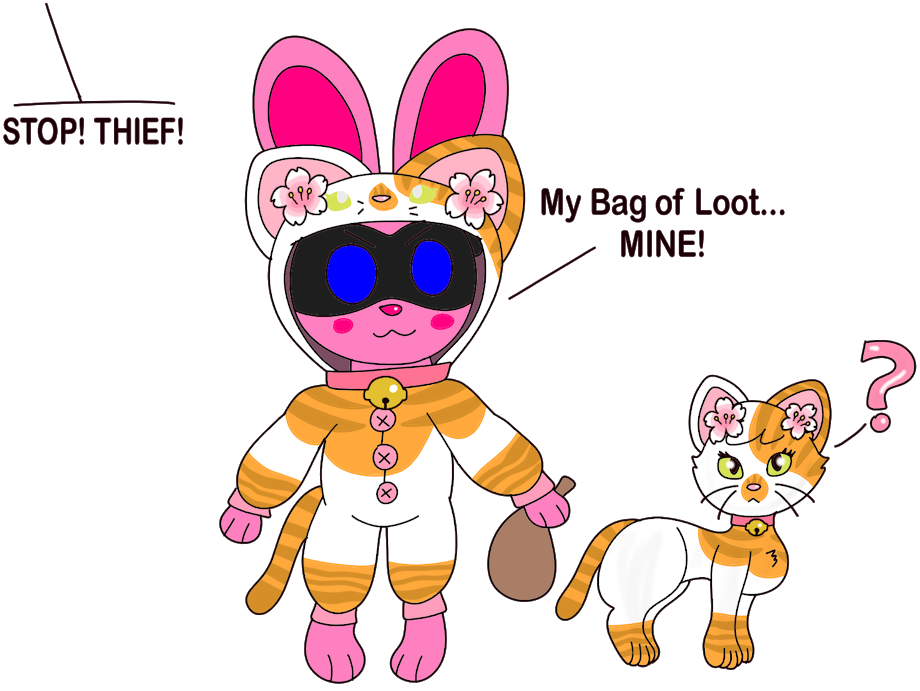 Art Thief Kirby the Rabbit disguised as Carol the Pusang Pinoy Cat as an Imposter along with Carol the Pusang Pinoy Cat Herself while Someone Else spotting the Imposter.