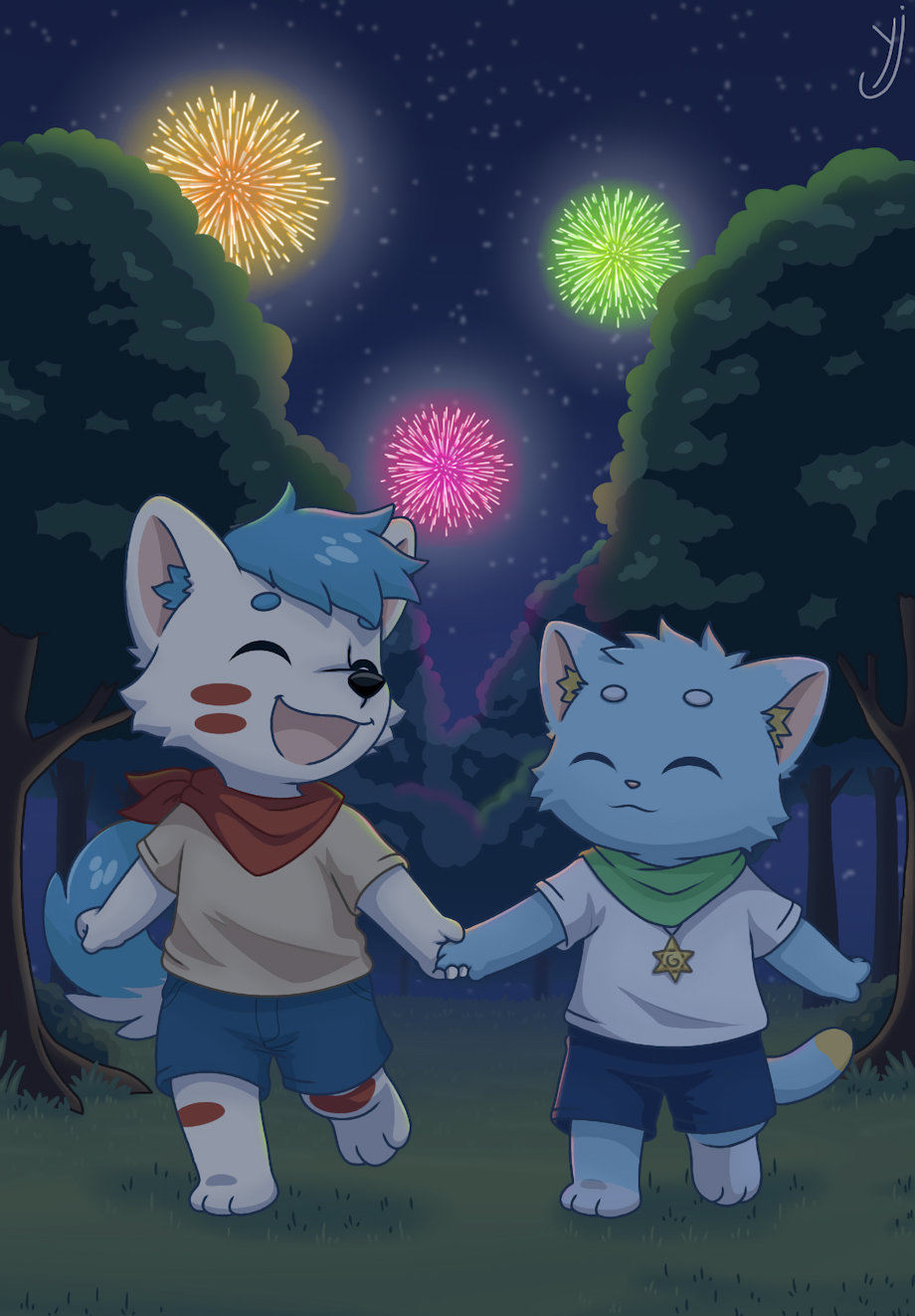 This will be my last drawing of the year, eith little Leo being accompanied to watch the fireworks from a better vantage point. I hope you all had a wonderful Christmas and enjoyed your gifts as much as I did haha xD