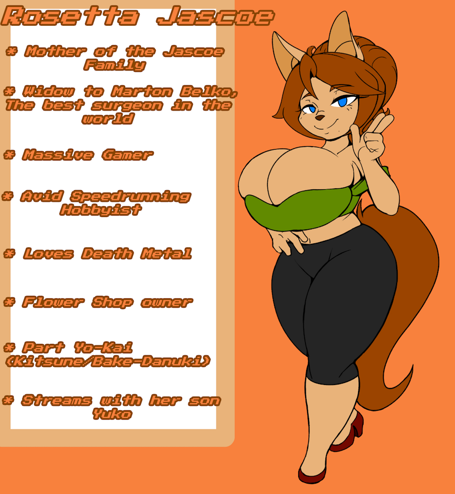 Rosetta Jascoe is the voluptuous, widowed mother of Xavier, Yuko, Zoey and Ziya Jascoe. She is a 31 year old fox that works her own flower garden after Xavier's sponsorships help his family