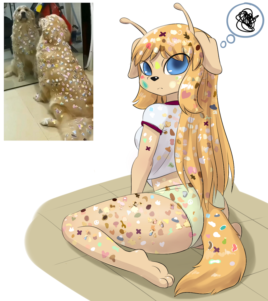 alien dog girl got pranked,in some way (dog photo for reference)