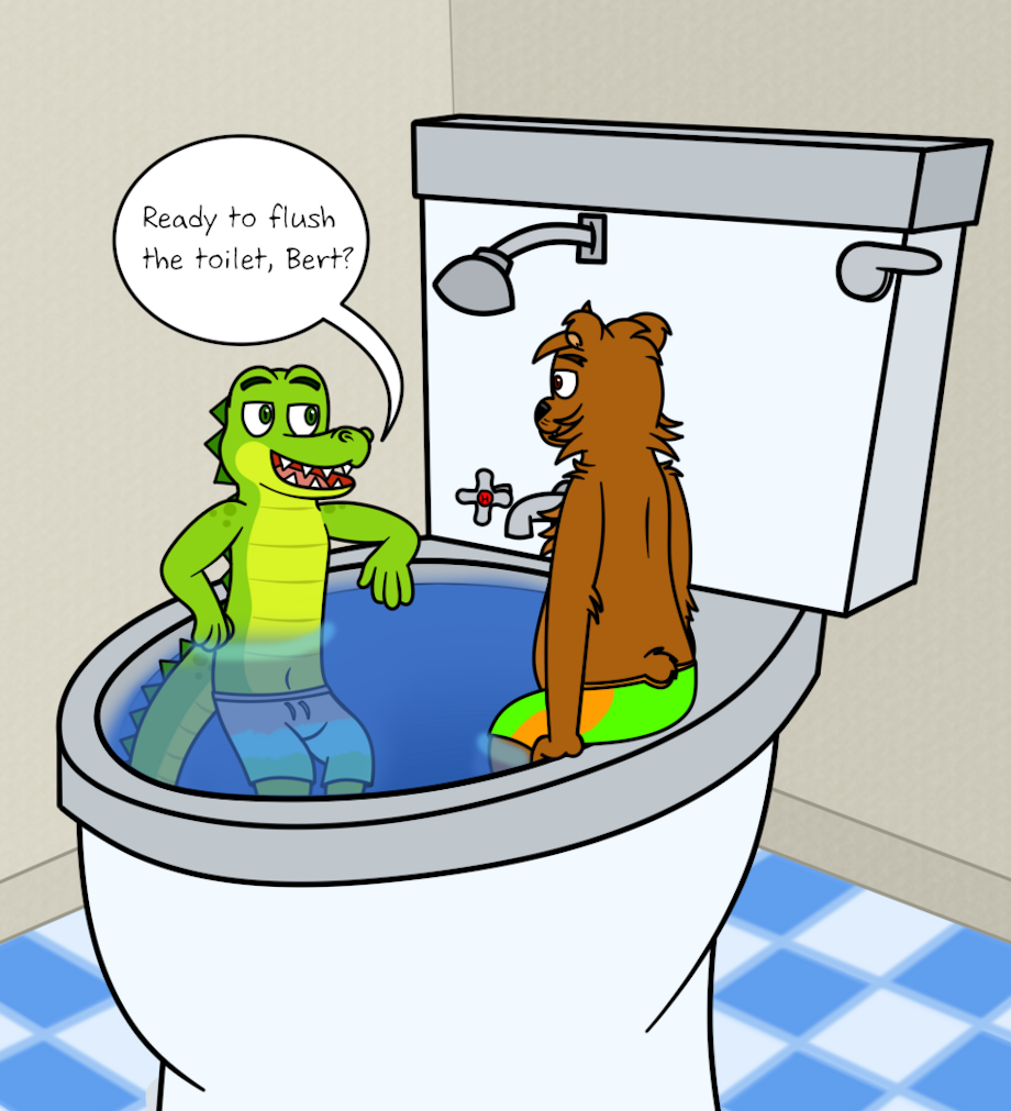 Croc and Bert use it as a swimming pool and a convenient way to flush the toilet to go somewhere else clean for a swim.