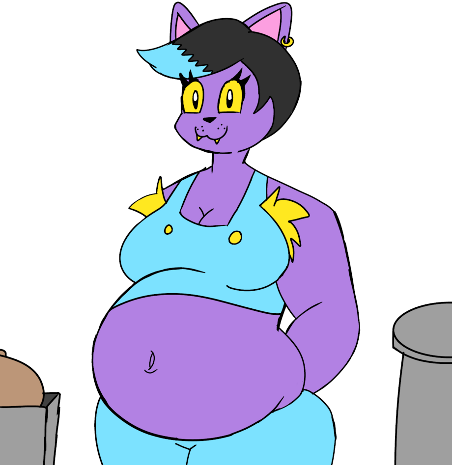 I'm not sure how her suspenders and pants separated in the alt. I just wanted to draw Catty with her belly exposed.