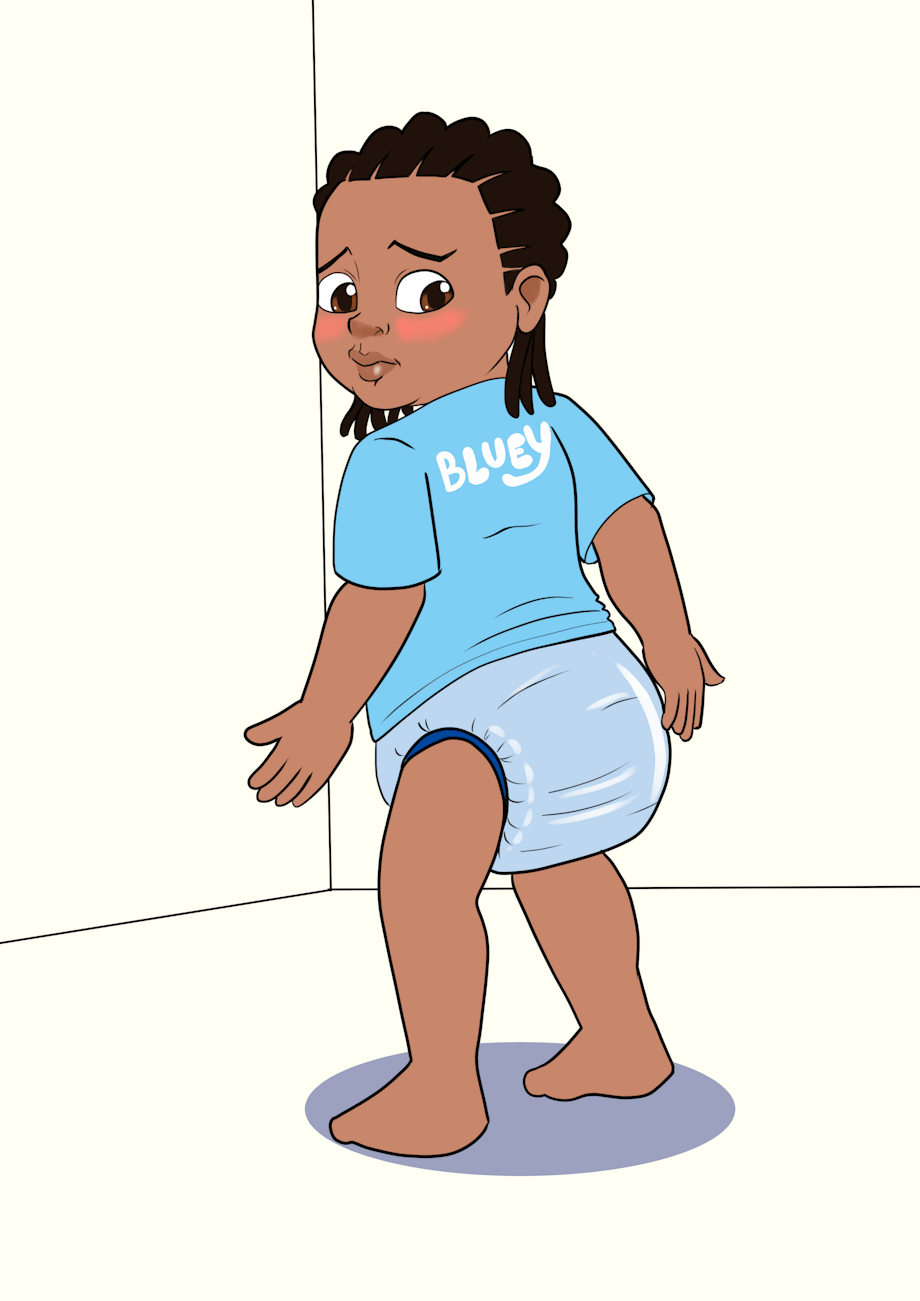 Looks like Riley is trapped in some hefty cloth diapers and plastic pants. I don't think he's going to be sneaking around anytime soon.