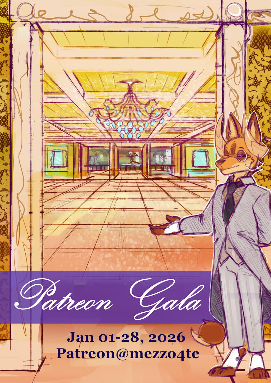 The venue has been retrofitted for this month and you are cordially invited to the Lounge Patreon Gala. For January's sketch theme, I'll be drawing OC's in formal wear. Dresses, Ball gowns, and Suits.