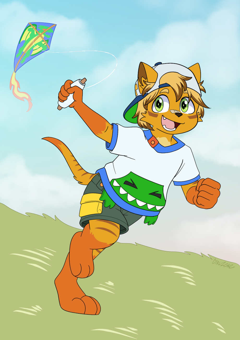 what an adorable cub flying his kite