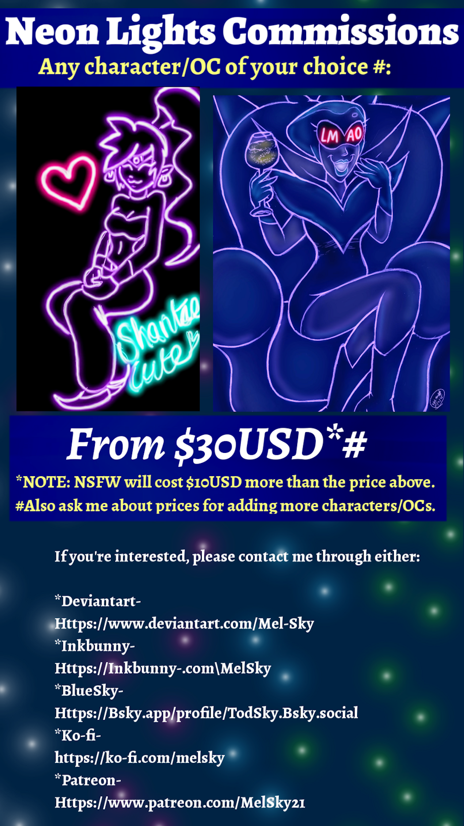 Neon Lights Commissions Price List