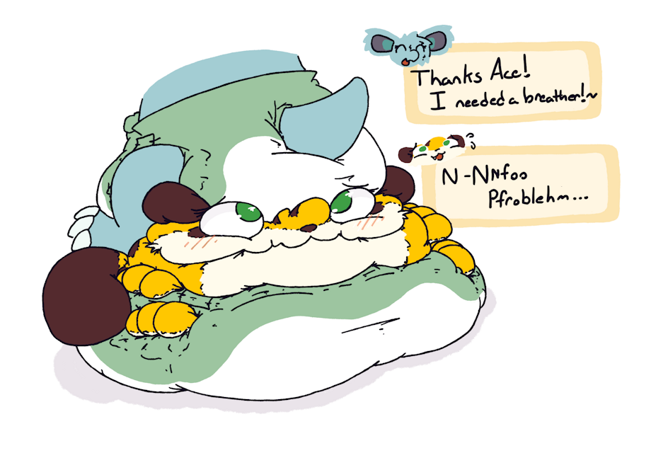 When dungeon delving the hard floors don't just cut it when trying to take a break! Unfortunately for Ace he squishes down into a real comfortable seat~