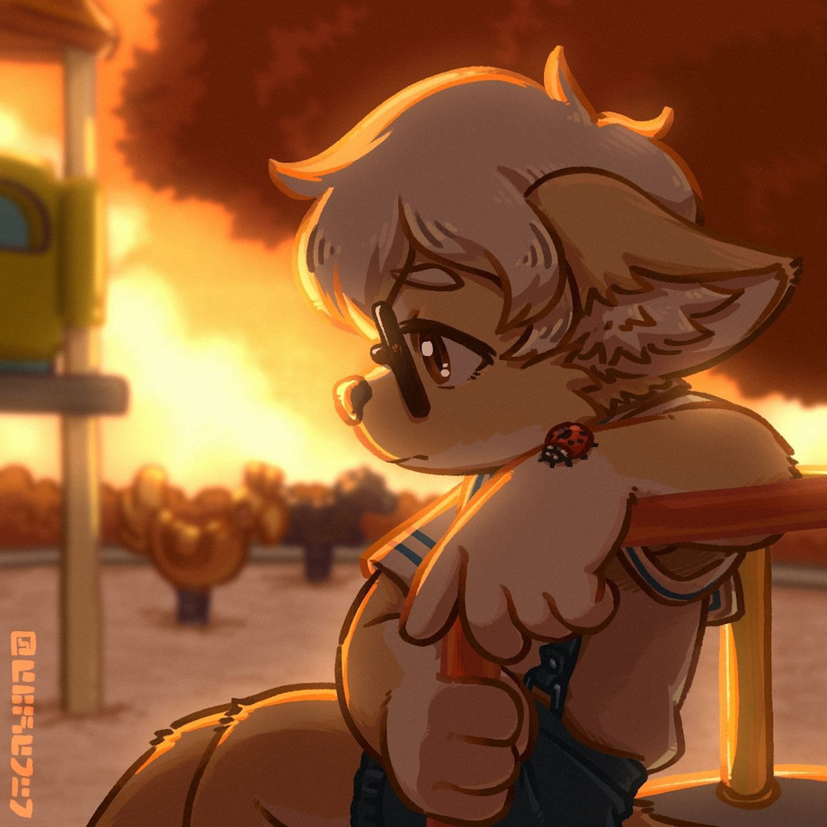 At least he had his phone as company now, the corgi watching the golden sky turn a much deeper hue of orange, then crimson. Well, even that was a lie. His phone was taken out, but...he ended up just looking at the street instead. Cars vroomed across the road and intersection, and he could feel the creeping numbness in his chest spread, spread, spread, and spread...
