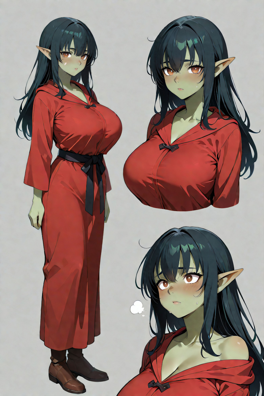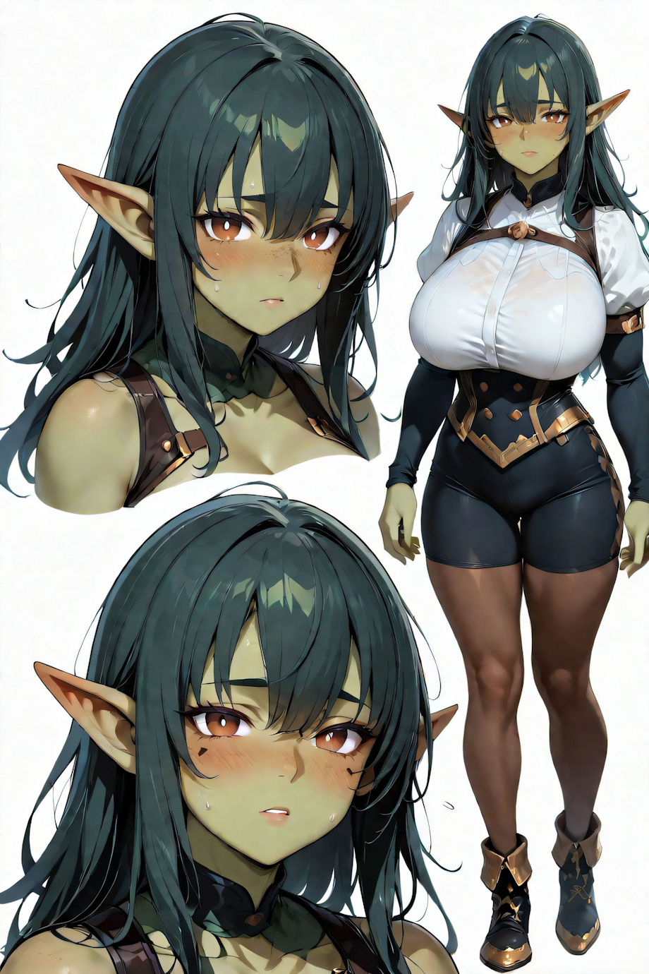 <lora:character_Sheet_XL:0.8> character sheet, Multiple views, simple background masterpiece, high quality, detailed fur, high detail, 4k, detailed background (1girl, solo, standing, different expressions on faces, bar maiden outfit:1.4) <lora:(1) FenrisXL Lighting:1> <lora:(1) Mjölnir (SDXL Lighting):1> <lora:photorealistic anthro 2:1> furry <j3zz1k4> (female:athletic:goblin:1.4), (green skin:1.4), (huge breasts:1.2), (black hair, long hair, hair between eyes, shoulder length bangs:1.4), (brown eyes, black pupils), (pointy ears:1.2) Negative prompt: bloodshot eyes, arms behind back, hands behind back, blurry, blurry background, bad anatomy, bad hands, three hands, three legs, bad arms, missing legs, missing arms, poorly drawn face, bad face, fused face, cloned face, worst face, three crus, extra crus, fused crus, worst feet, three feet, fused feet, fused thigh, three thigh, fused thigh, extra thigh, worst thigh, missing fingers, extra fingers, ugly fingers, long fingers, horn, realistic photo, extra eyes, huge eyes, 2girl, amputation, disconnected limbs, worst quality, normal quality, low quality, low res, blurry, text, watermark, logo, banner, extra digits, cropped, jpeg artifacts, signature, username, error, sketch ,duplicate, ugly, monochrome, horror, geometry, mutation, disgusting, jpeg artifacts, , NEGATIVE_HANDS ac_neg2 p0rnXL-neg DeepNegative_xl_v1 BeyondV3-neg, (nipples, nude, nudity:2) (erect nipples:2) (topless:2) Steps: 30, Sampler: DDIM, Schedule type: SGM Uniform, CFG scale: 3, Seed: 2752696488, Size: 512x768, Model hash: 171e88f0da, Model: yiffymix_v62Noobxl, Denoising strength: 0.25, ADetailer model 2nd: face_yolov8s.pt, ADetailer confidence 2nd: 0.3, ADetailer dilate erode 2nd: 4, ADetailer mask blur 2nd: 4, ADetailer denoising strength 2nd: 0.4, ADetailer inpaint only masked 2nd: True, ADetailer inpaint padding 2nd: 32, ADetailer version: 25.3.0, Hires upscale: 1.5, Hires steps: 20, Hires upscaler: 4xUltrasharp_4xUltrasharpV10.pth, Lora hashes: "character_Sheet_XL: 4c59246e5115, (1) FenrisXL Lighting: c49df8024095, (1) Mjölnir (SDXL Lighting): 368d428918ac, photorealistic anthro 2: bed53d4c8b68", TI: "NEGATIVE_HANDS, ac_neg2, p0rnXL-neg, DeepNegative_xl_v1, NEGATIVE_HANDS, ac_neg2, p0rnXL-neg, DeepNegative_xl_v1", Version: f2.0.1v1.10.1-previous-224-g90019688 |