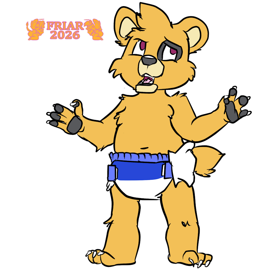 Illustration of Byron the diapered bear cub unhappy with his depiction on a pack of Kimbies diapers. "Please tell me you're not using that pic on the package..."