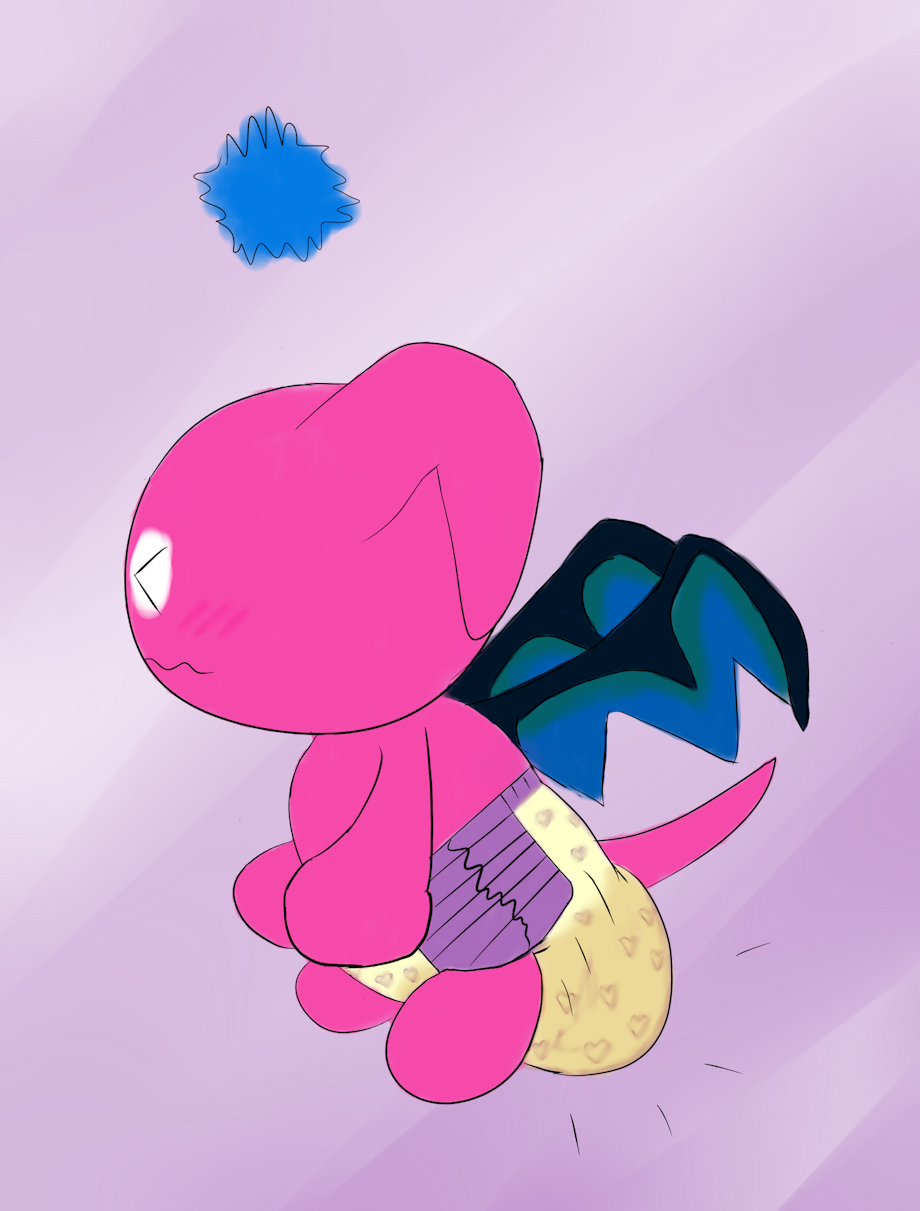 Today's chao is of the dark fly variety, no additional substats (usually referred to as fly/normal). It technically has its standard coloration, but it's monotone instead of the typical two-tone patterns (notably its more prominent black hues have disappeared).